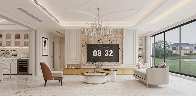 該項目位于廣州花都美林湖畔的獨棟別墅,原建筑室內500平,改建后面積700平,在空間設計上,主張“流動感”與“開放性”。客餐廳采用一體化布局,無界過渡打破視覺局限,搭配大面積落地窗引入自然光線,讓光影成為空間的動態裝飾,與室外景觀形成虛實呼應。臥室以“靜謐舒適”為要義,簡化造型語言,通過材質碰撞營造層次——柔軟織物中和硬朗線條,溫潤木飾面平衡冷調石材,構建兼具包裹感與呼吸感的休憩場域。
