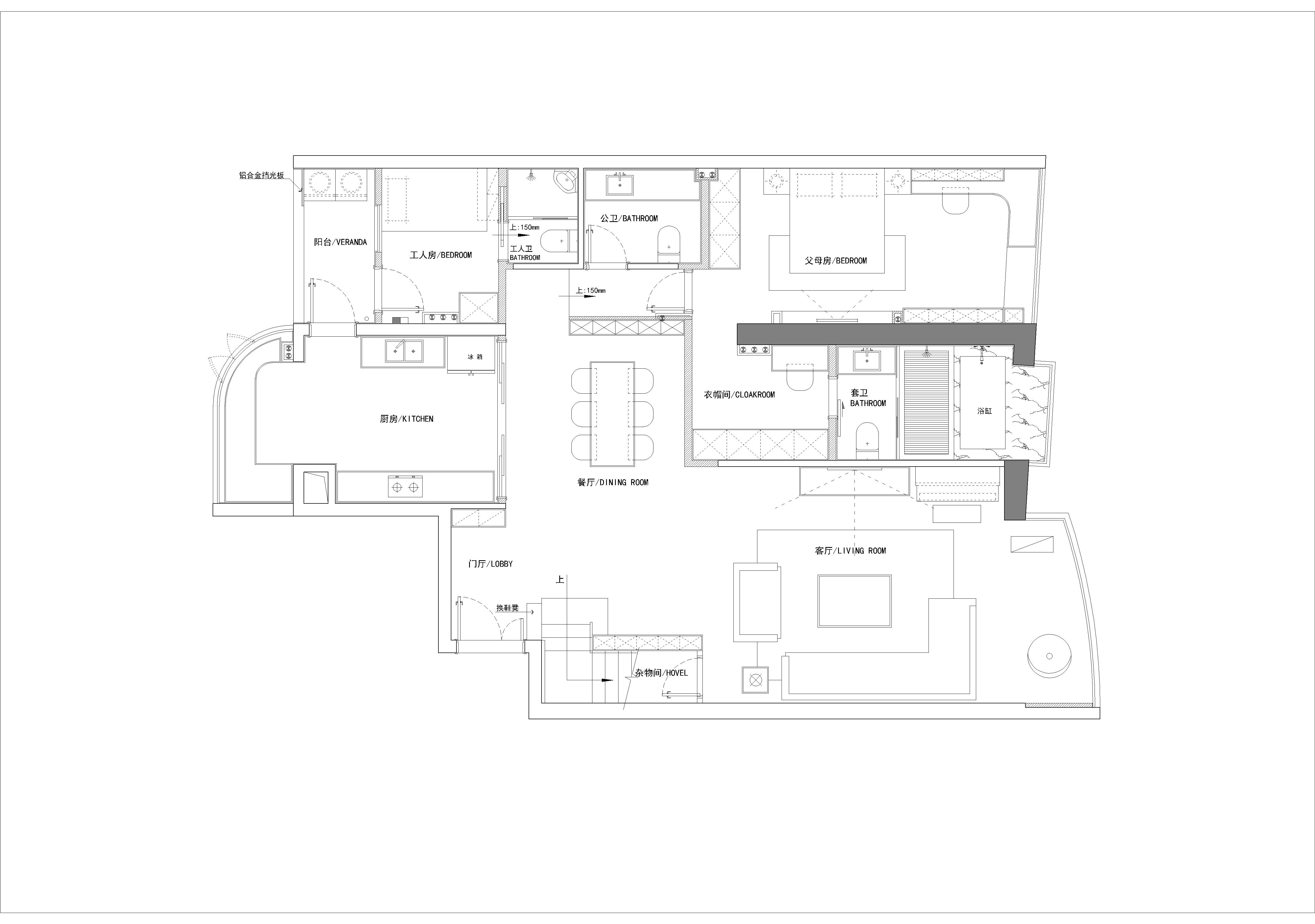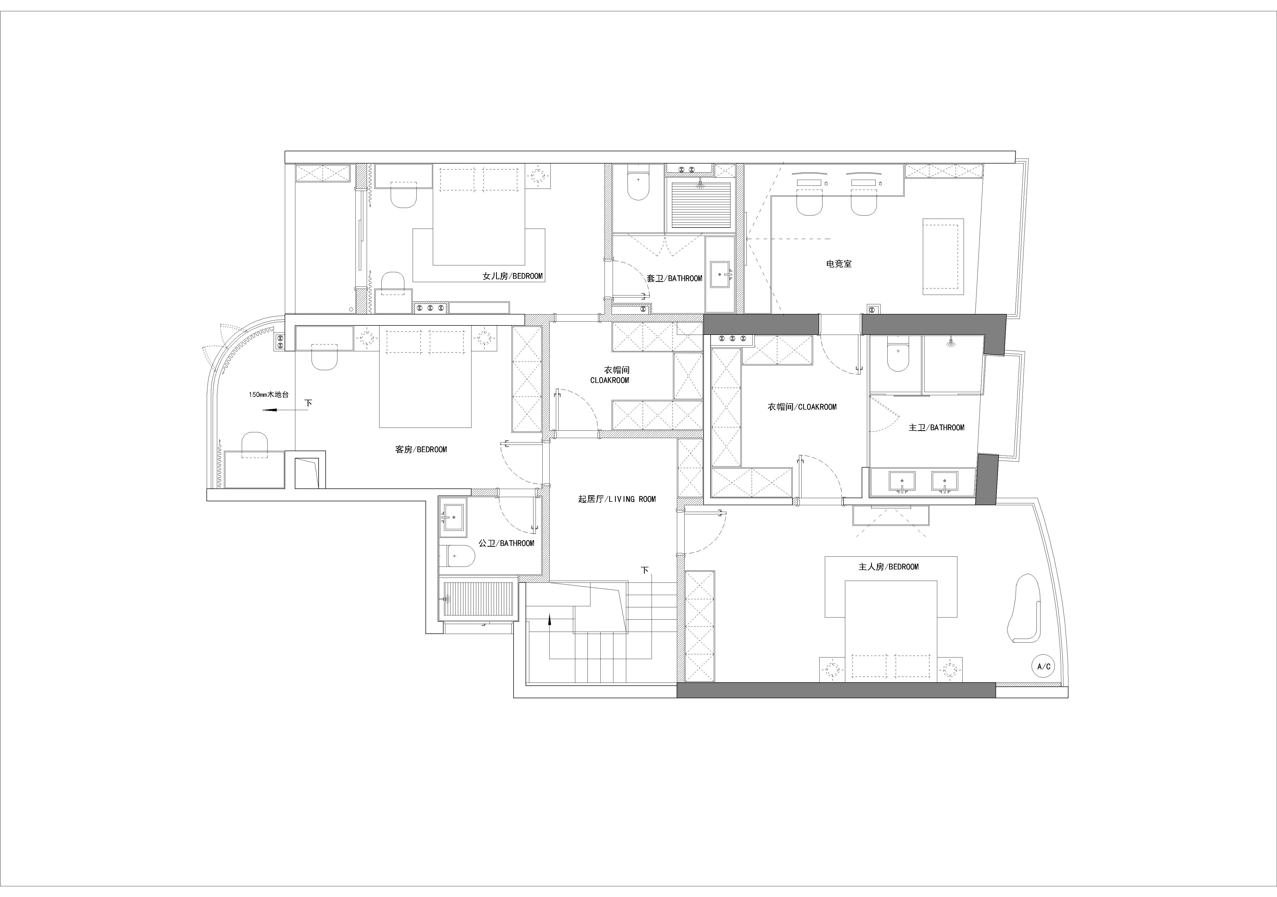 本案坐落于廣州珠江岸邊,視野開拓,清風徐徐,站在一覽無余的落地玻璃窗邊,讓人有一種一覽眾山小的感受,色調上的遞進感把空間的層次一步步推向縱深,讓空間處處有形且融于整體,色調和且不張揚,給現(xiàn)在的年輕人一種避世的歸屬感,找到屬于自己獨立且靜謐的空間。