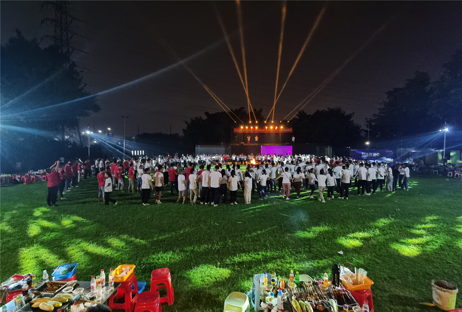 篝火晚會上,每個團隊各顯才藝,為此次活動增添許多美好記憶;繚亂耀眼的燈光下,星藝人手牽手圍在篝火前共享歡快時光,唯愿不負秋光不負卿,同心筑夢共前行!