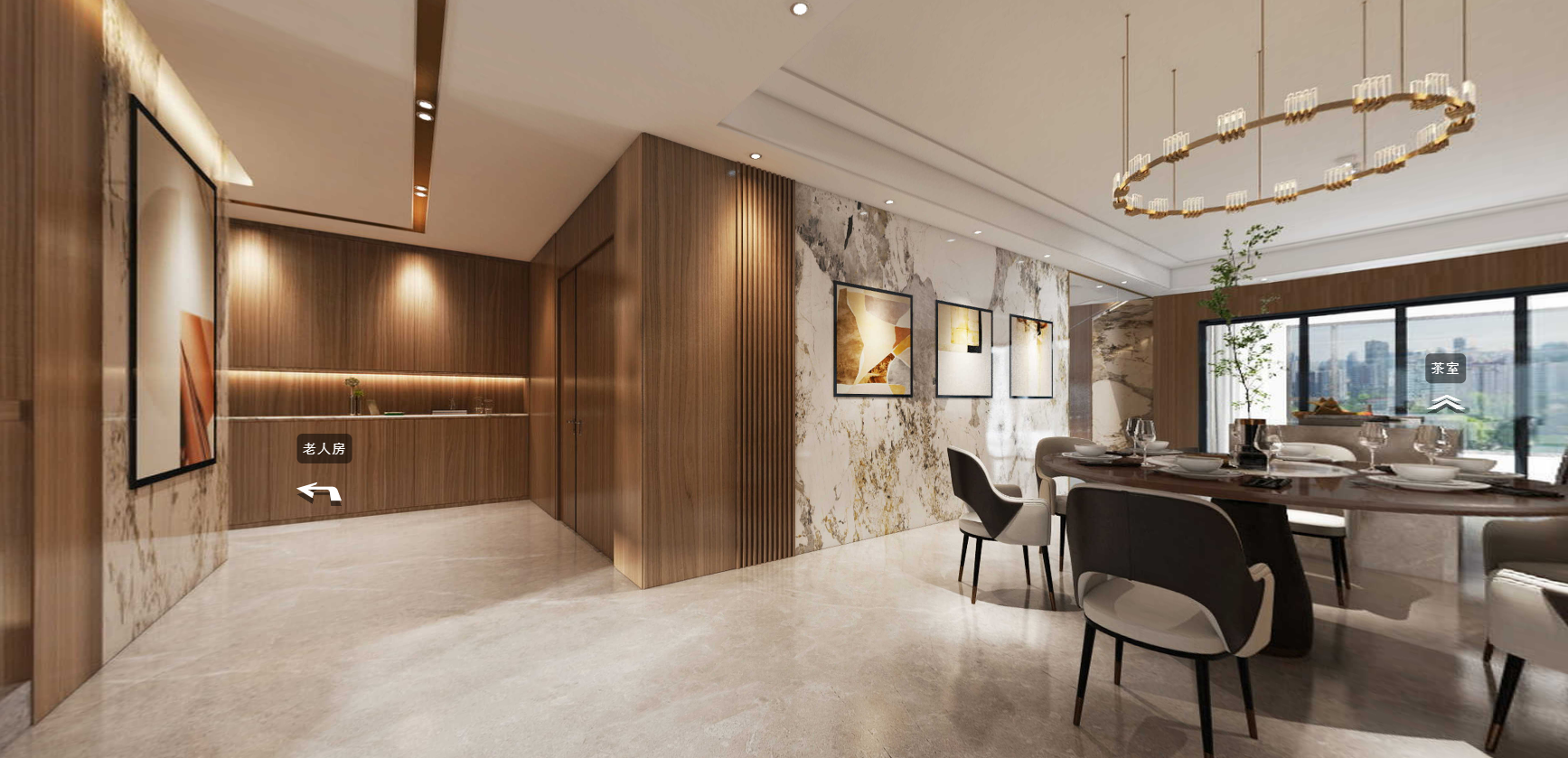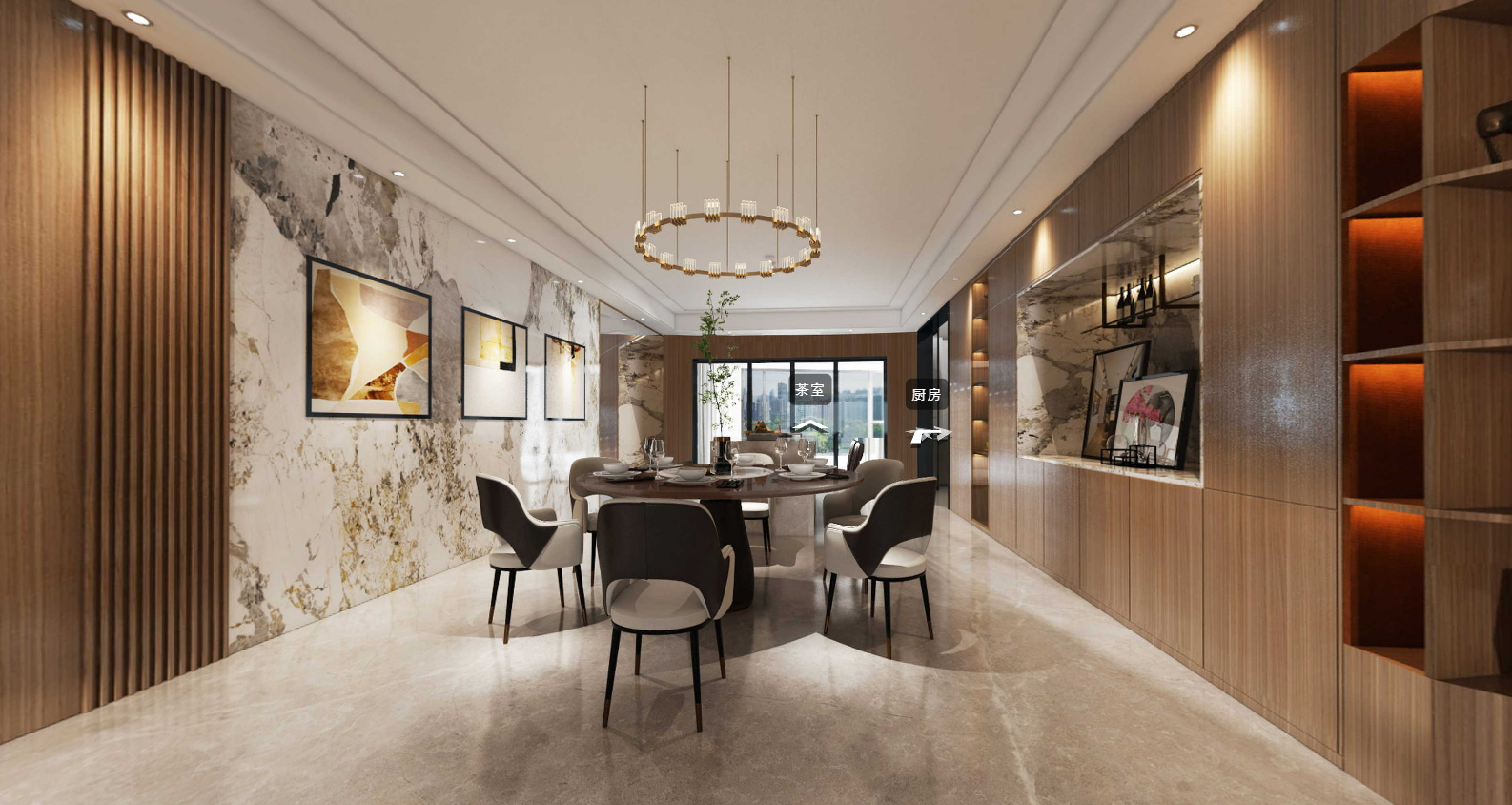 餐廳融合西廚加島臺功能,功能上合二為一,滿足長輩其樂融融的圍餐氛圍,又不失一家人的小資情調。