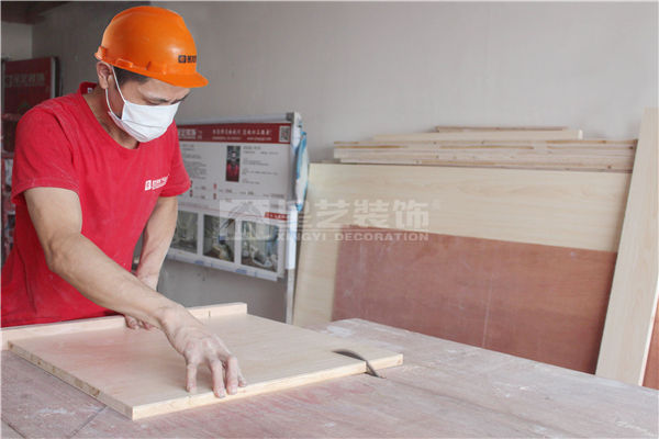 將15厘板條涂好白乳膠粘貼在飾面板上形成框架,再在上面粘貼一層飾面板。